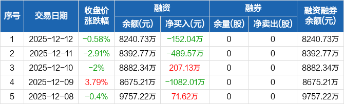 华塑科技:融资净偿还152.04万元,融资余额8240.73万元(12-12)