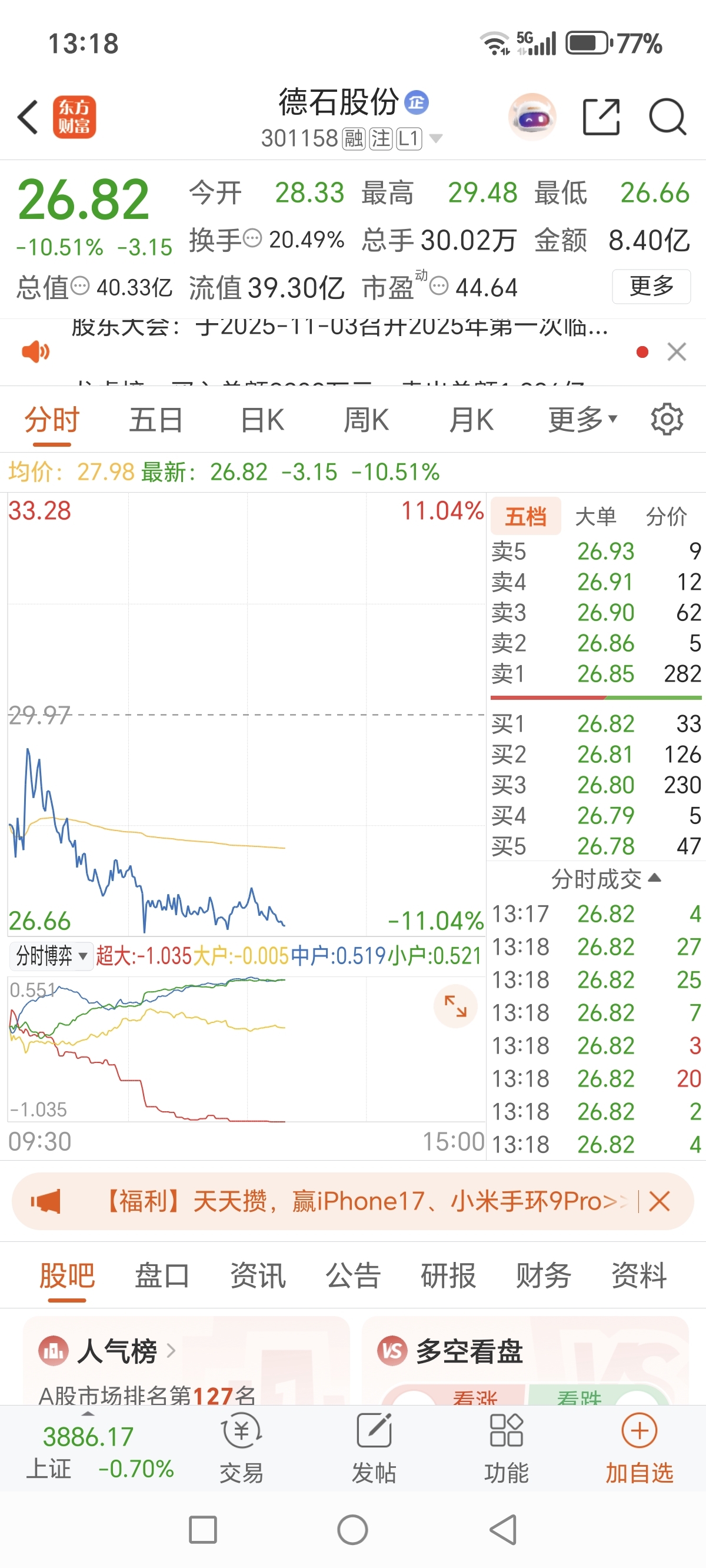 $德石股份(SZ301158)$ $上证指数(SH000001)$ 我朋友想进德石股份,我是不是该劝他再等等?