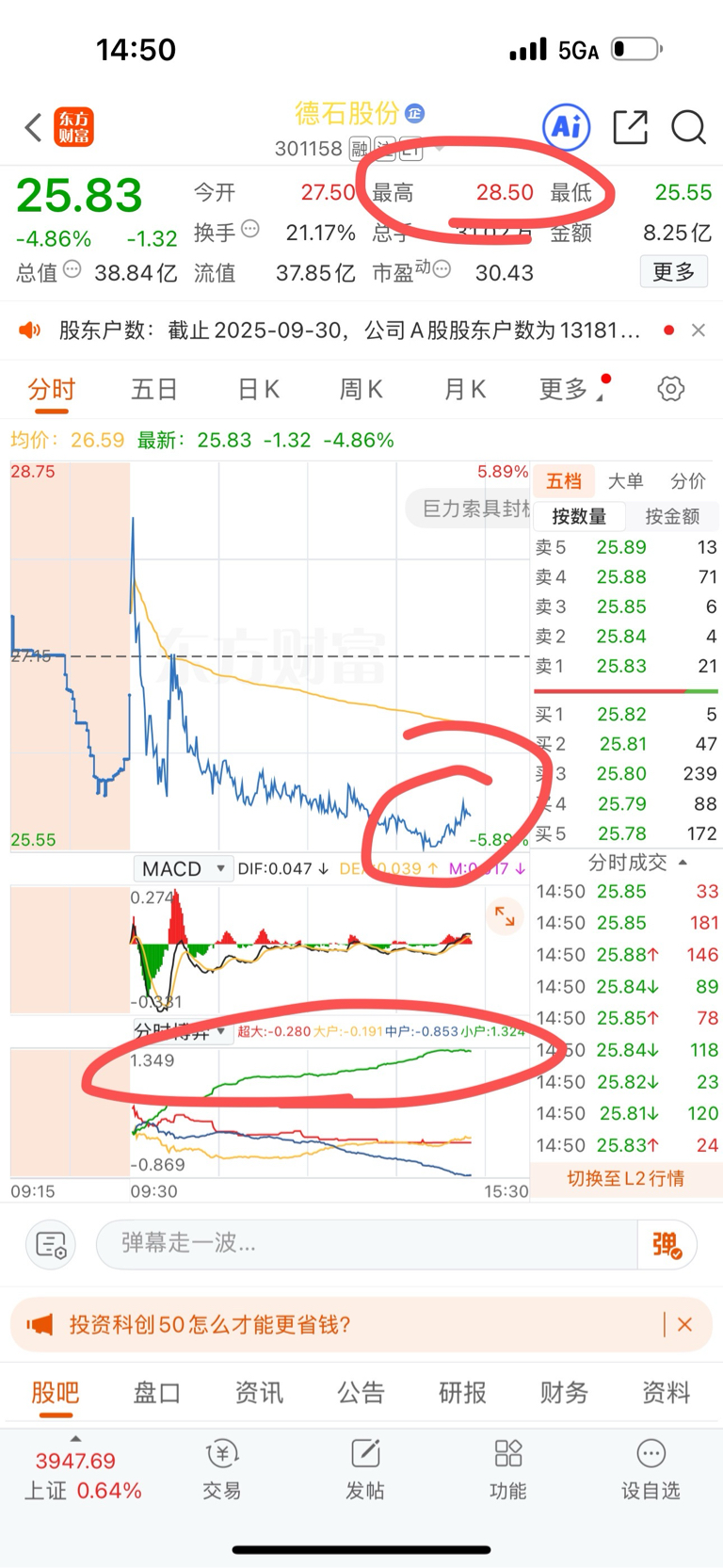 $德石股份(SZ301158)$ 今天都是散户接盘,下周肯定低开低走,而且到顶了,三个涨停板60%,现在回调,涨多必跌,下周跌停板都有可能发生。