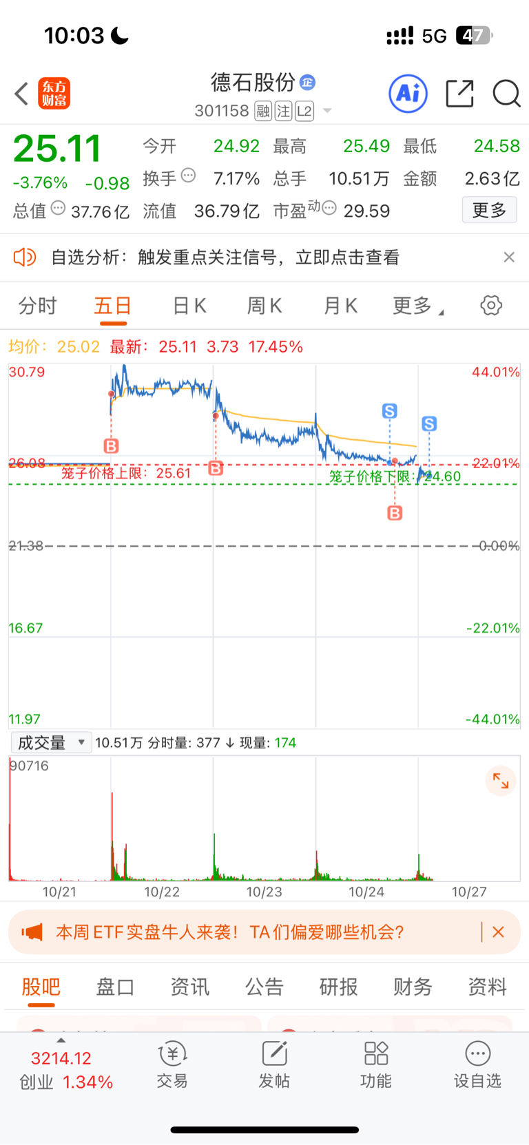 $德石股份(SZ301158)$ 今天放弃了,不进了