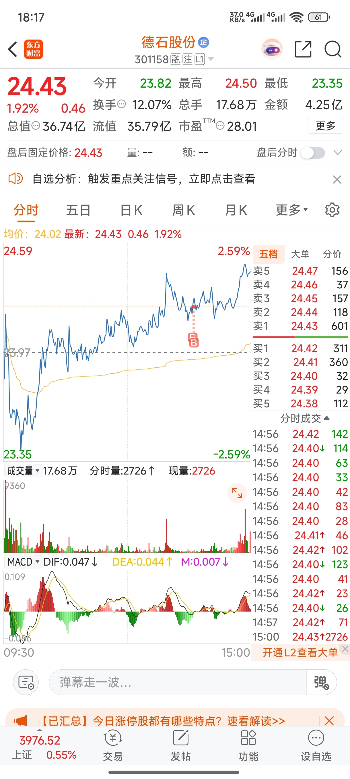 $德石股份(SZ301158)$ 新开仓德石,看明天能不能吃肉