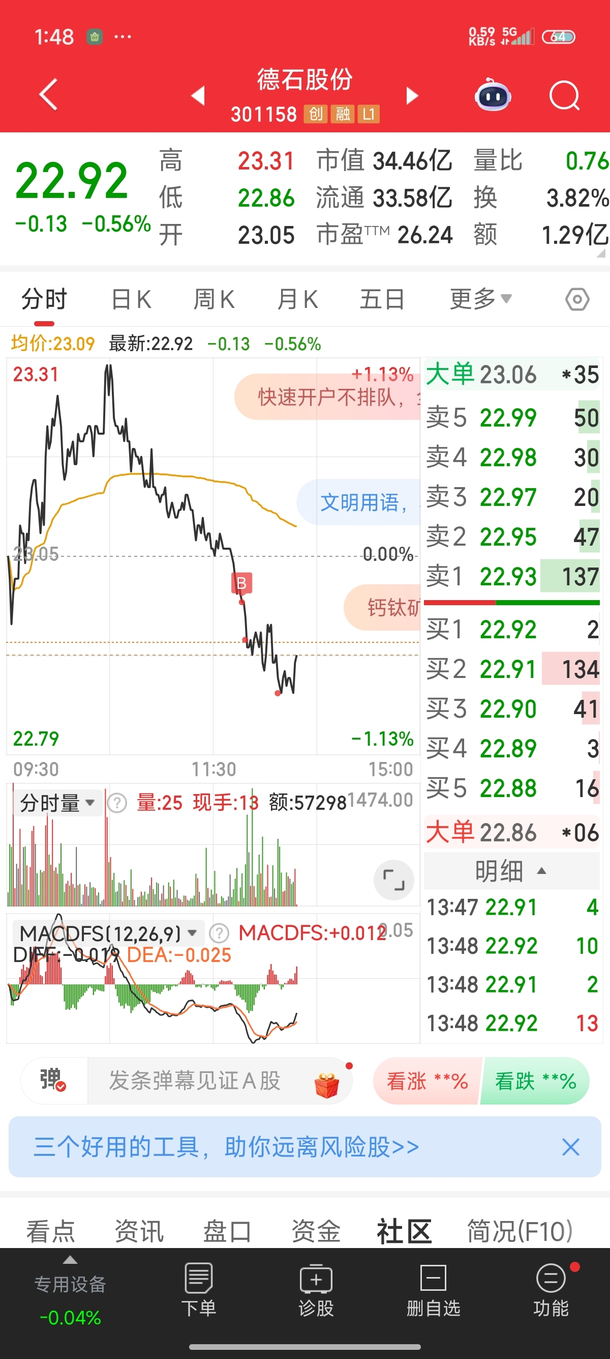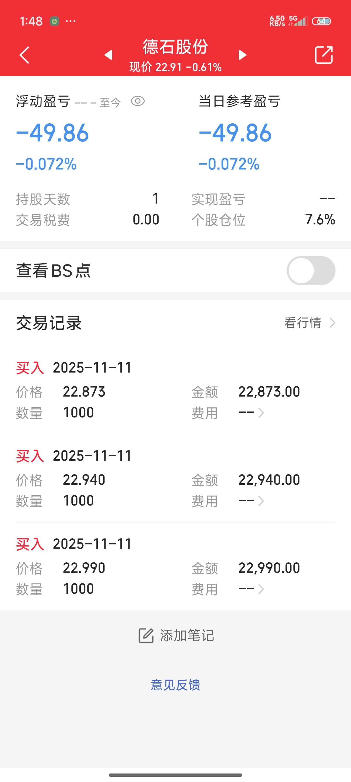 德石股份,分批加。目标不高,短线能赚到钱就走!