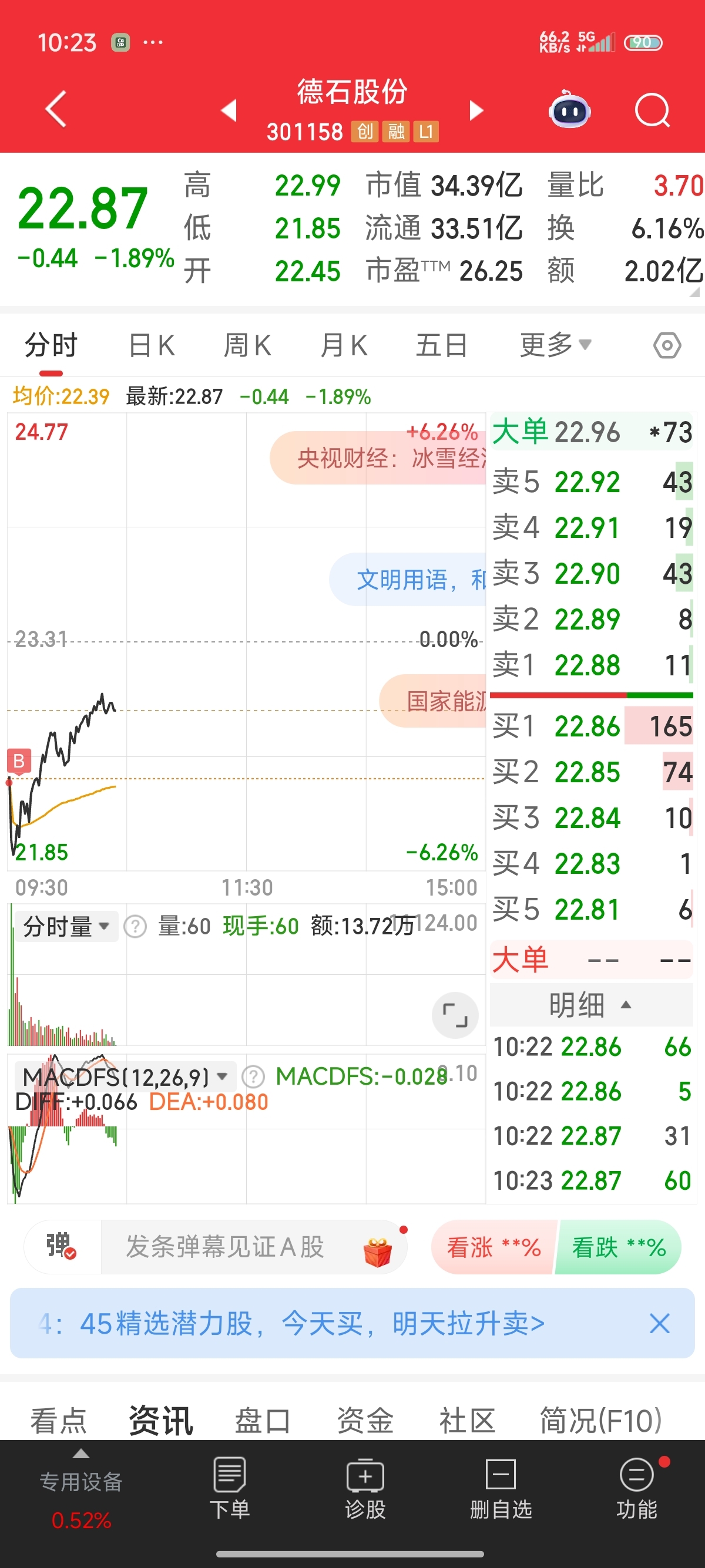 开盘低吸了一丢丢德石股份!