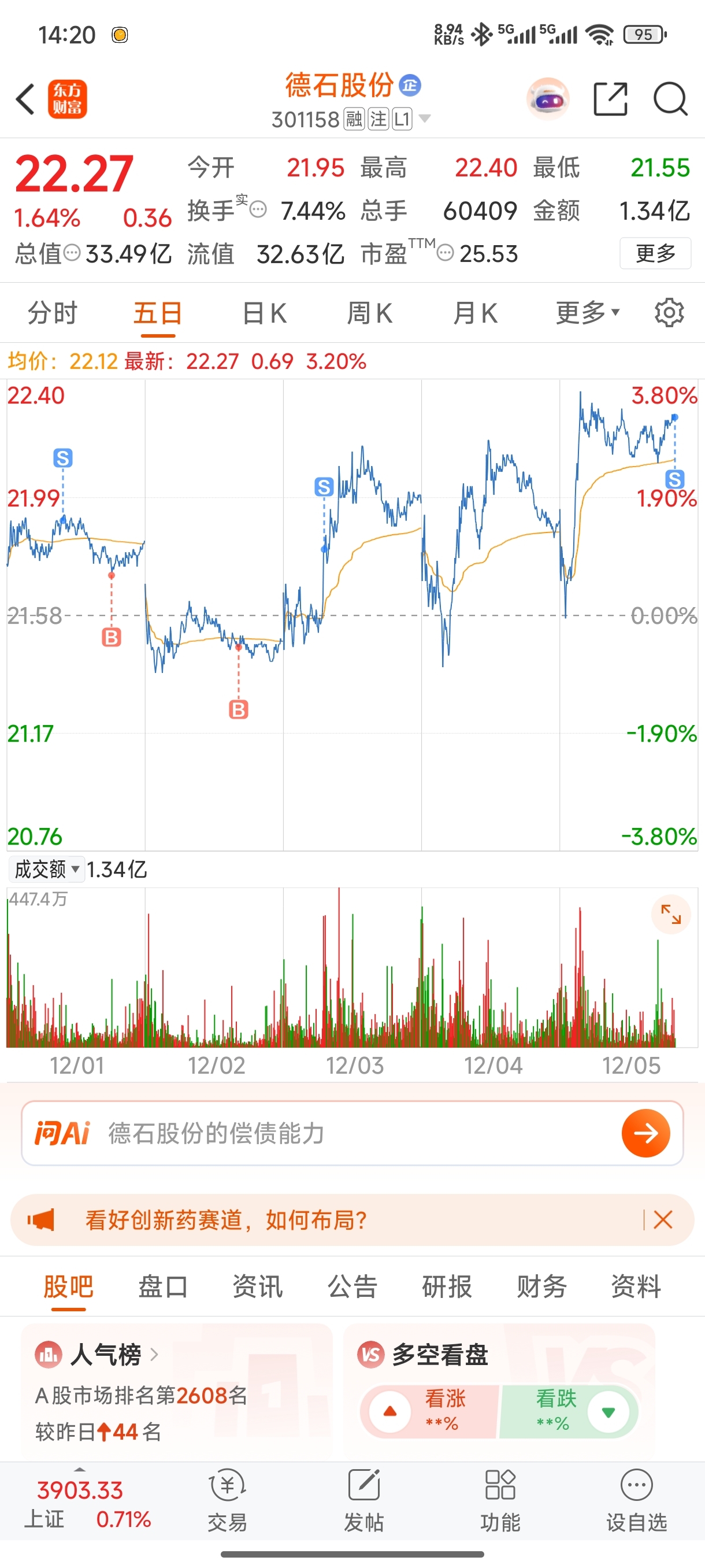 $德石股份(SZ301158)$ 清仓走了,不好玩,一点激情都没有