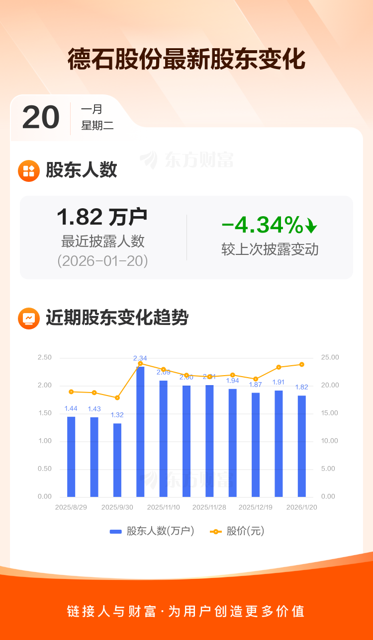 德石股份:截至1月20日最新股东户数1.82万户,较上期减少4.34%