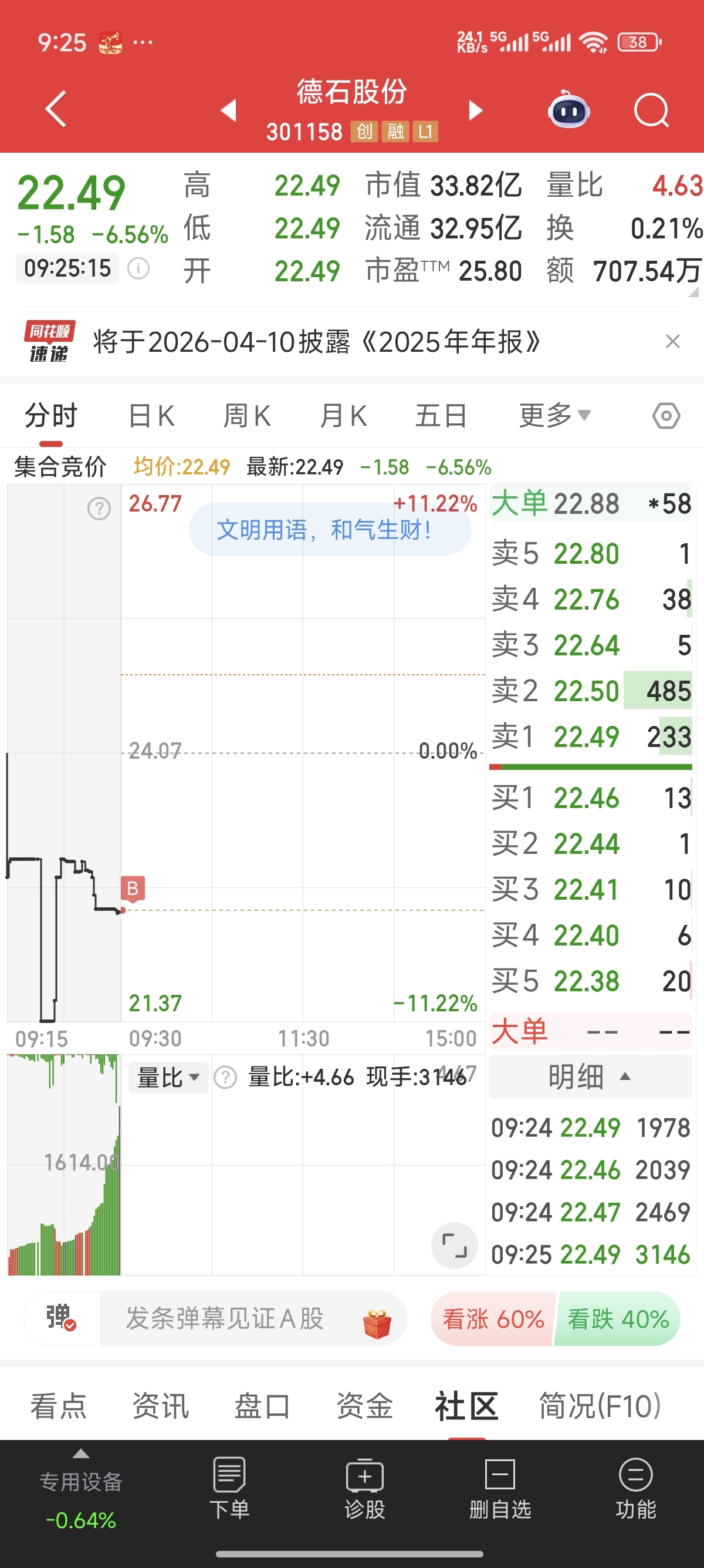 $德石股份(SZ301158)$ 挂22.80买入的,感谢各位给力啊