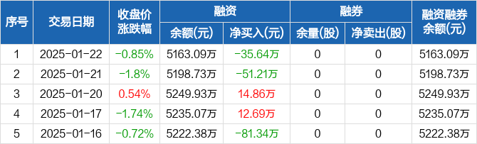 三维天地:融资净偿还35.64万元,融资余额5163.09万元(01-22)