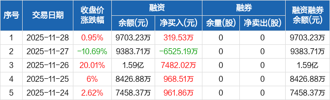 三维天地:融资净买入319.53万元,融资余额9703.23万元(11-28)
