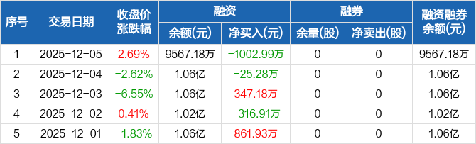 三维天地:融资净偿还1002.99万元,融资余额9567.18万元(12-05)