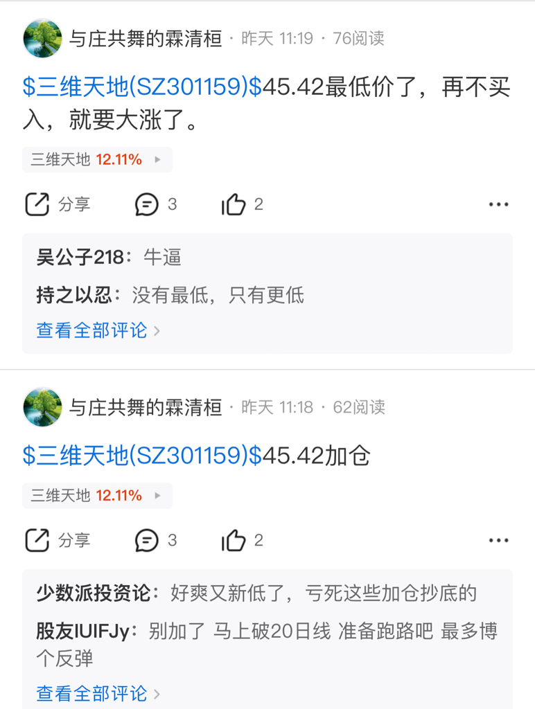 $三维天地(SZ301159)$ 昨天怼我的人怎么样了?