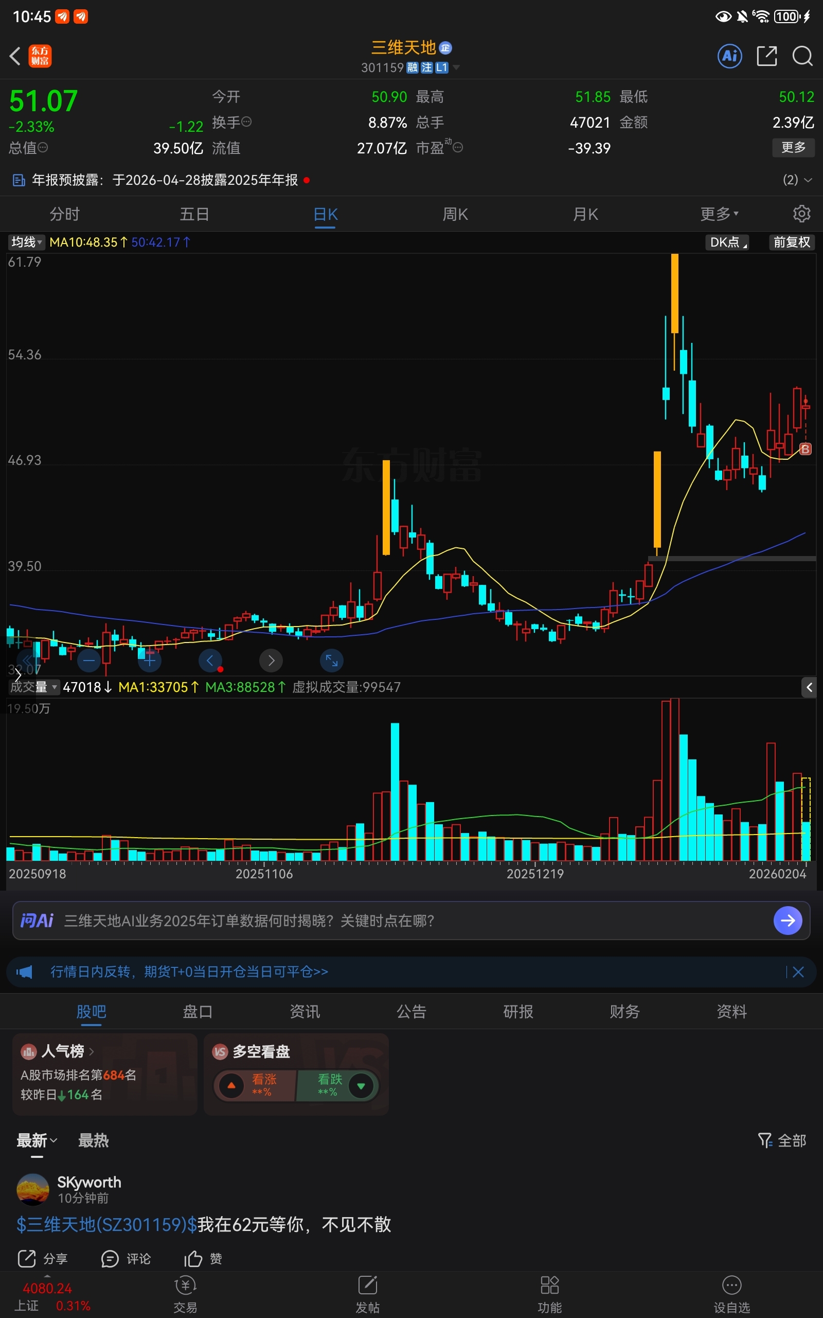 温馨提示: 1.根据《证券法》规定,禁止编造、传播虚假信息或者误导性信息,扰乱证券市场;2.用户在本社区发表的所有资料、言论等仅代表个人观点,与本网站立场无关,不对您构成任何投资建议。用户应基于自己的独立判断,自行决定证券投资并承担相应风险。《东方财富社区管理规定》