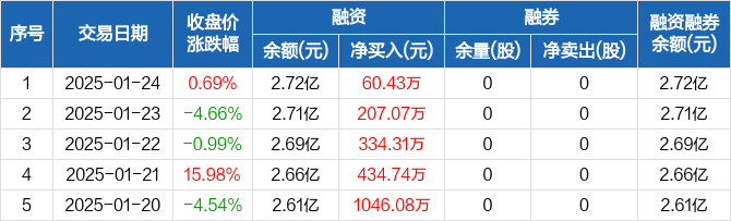 翔楼新材:连续5日融资净买入累计2082.64万元(01-24)