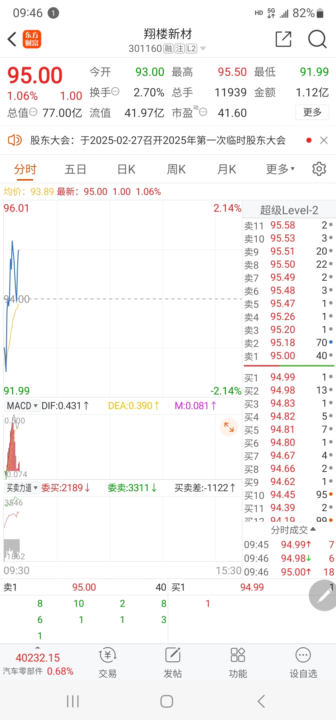 $翔楼新材(SZ301160)$ 手里有货才敢玩T