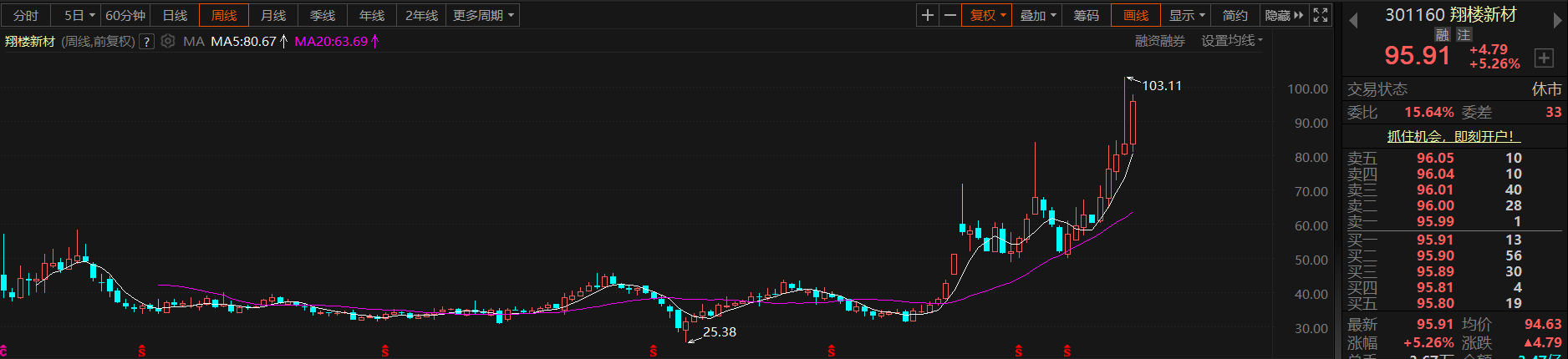 翔楼新材 95.91 突破