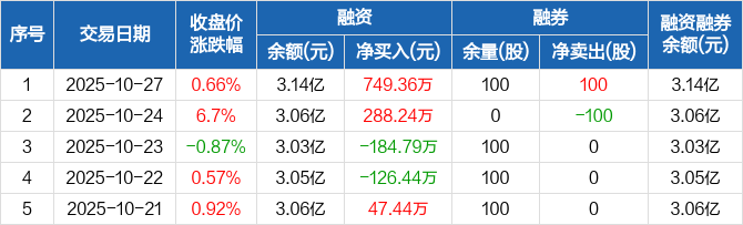 翔楼新材:融资净买入749.36万元,融资余额3.14亿元(10-27)