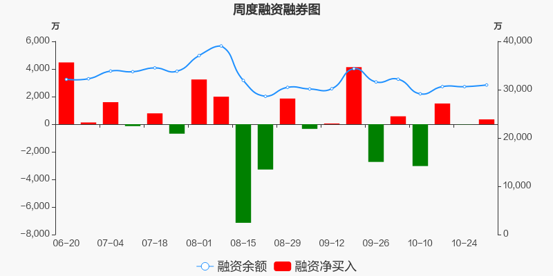 翔楼新材本周(2025/10/27-2025/10/31)累计涨幅达1.95%,截至10月31日最新股价报收64.44元。从增量上来看,10月27日至10月30日融资买入交易规模6287.47万元,融资偿还规模5938.5万元,期内融资净买入348.97万元。从存量上来看,截止11月2日,翔楼新材融资融券余额3.1亿元,其中融资余额规模3.1亿元,融券余额规模6213元。