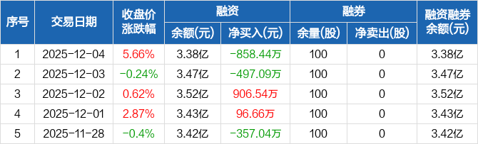 翔楼新材:融资净偿还858.44万元,融资余额3.38亿元(12-04)