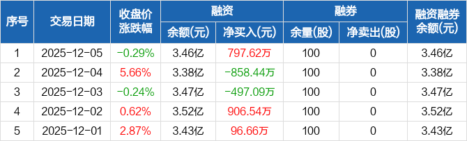 翔楼新材:融资净买入797.62万元,融资余额3.46亿元(12-05)