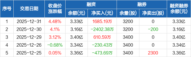 翔楼新材:融资净买入1685.19万元,融资余额3.33亿元(12-31)