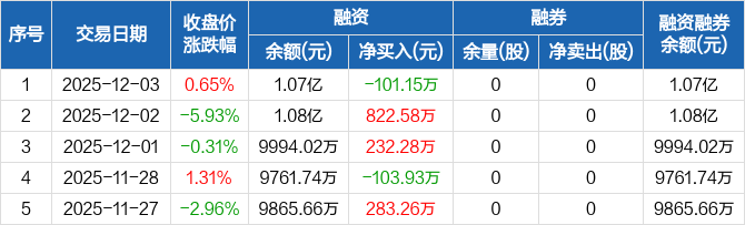 国能日新:融资净偿还101.15万元,融资余额1.07亿元(12-03)