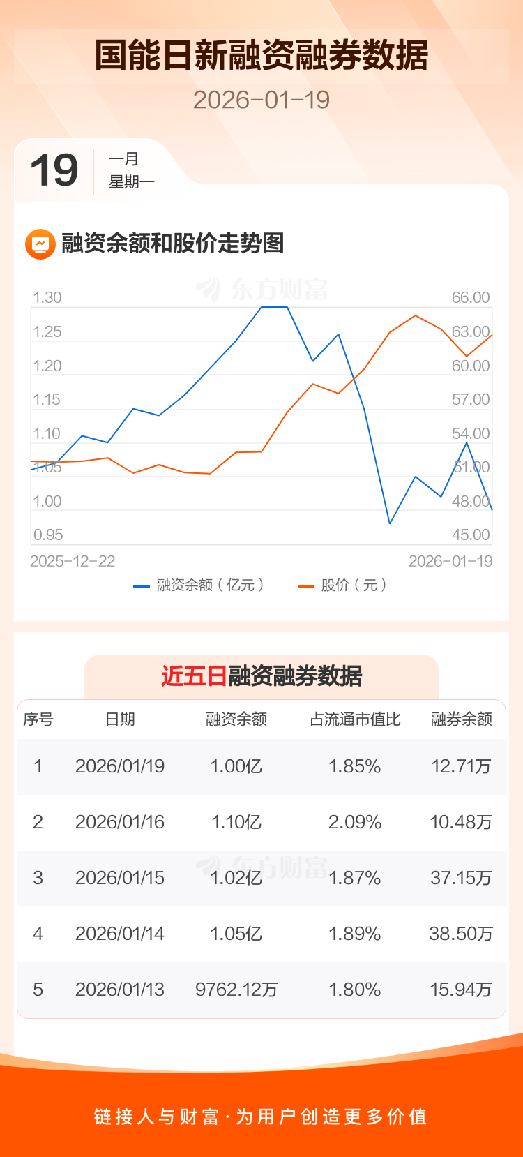 交易所最新数据显示,国能日新于2026年1月19日获融资买入1539.47万元,融资偿还2503.11万元,当日融资净偿还963.63万元。目前,该股融资余额1.00亿,占流通市值比例为1.85%。
