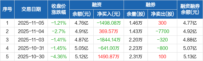 锐捷网络:融资净偿还1498.08万元,融资余额4.76亿元(11-05)
