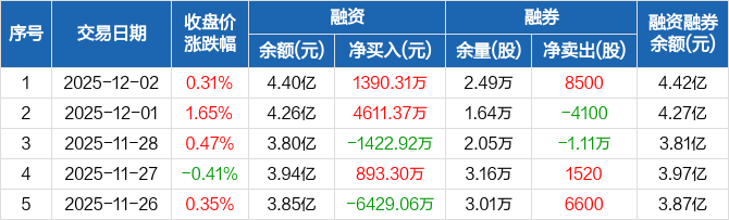 锐捷网络:融资净买入1390.31万元,融资余额4.4亿元(12-02)
