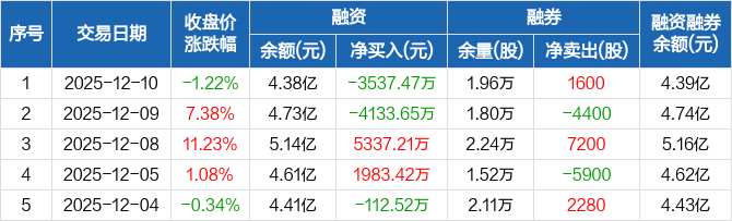 锐捷网络:融资净偿还3537.47万元,融资余额4.38亿元(12-10)