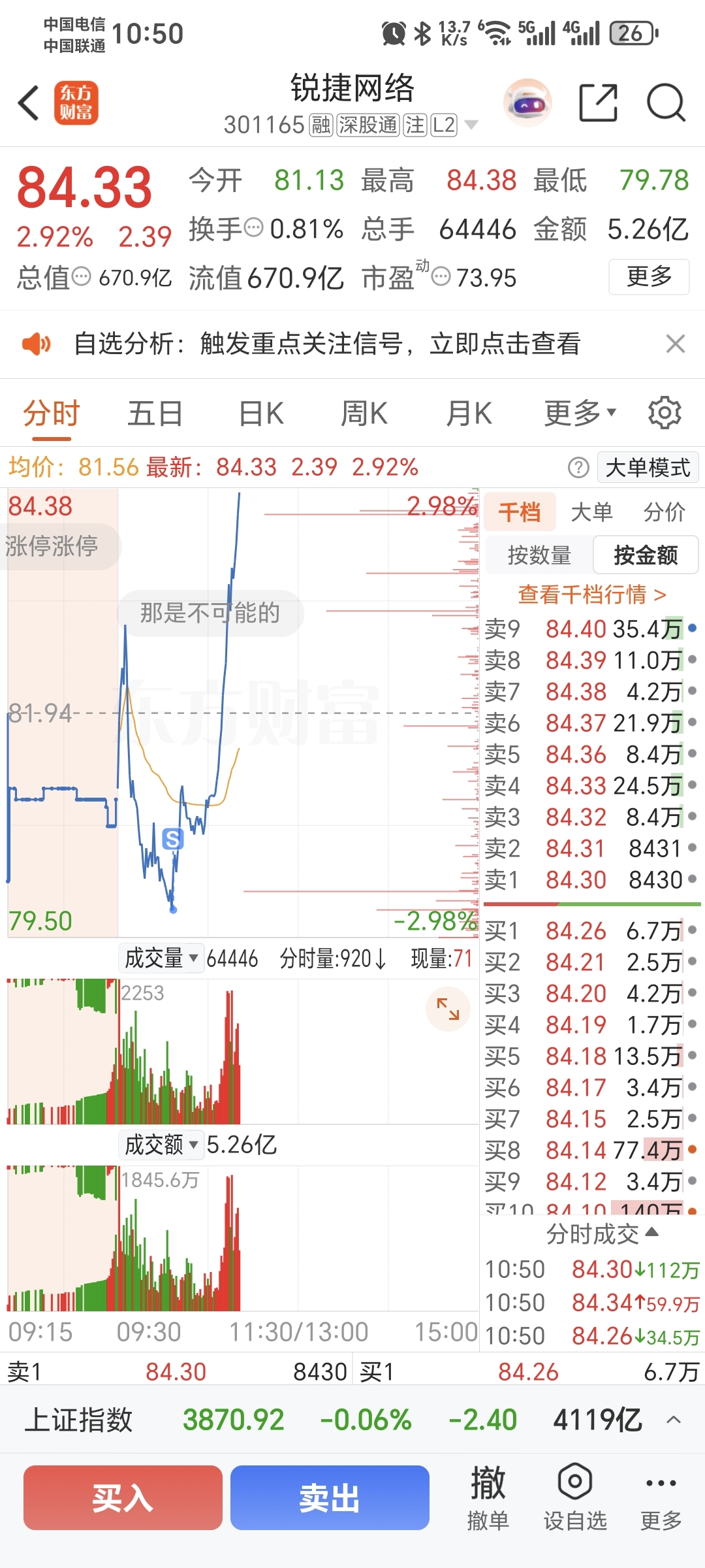$锐捷网络(SZ301165)$ 被主力监控了吗?妥妥韭菜提前两天进去吃个大面