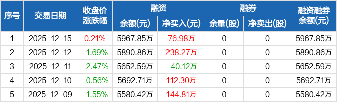 优宁维:融资净买入76.98万元,融资余额5967.85万元(12-15)