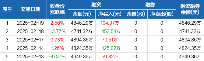 建研设计:融资净买入104.97万元,融资余额4846.29万元(02-19)