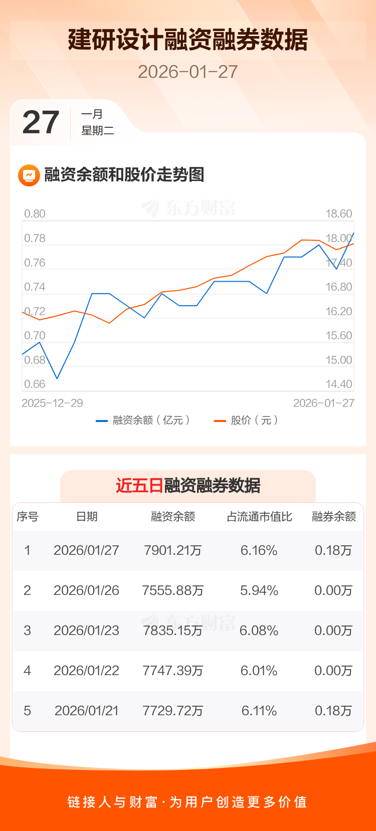 交易所最新数据显示,建研设计于2026年1月27日获融资买入633.04万元,融资偿还287.70万元,当日融资净买入345.34万元。目前,该股融资余额7901.21万,占流通市值比例为6.16%。