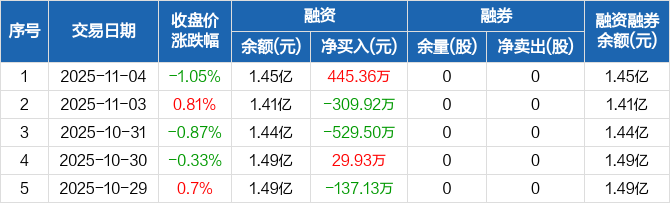 通灵股份:融资净买入445.36万元,融资余额1.45亿元(11-04)