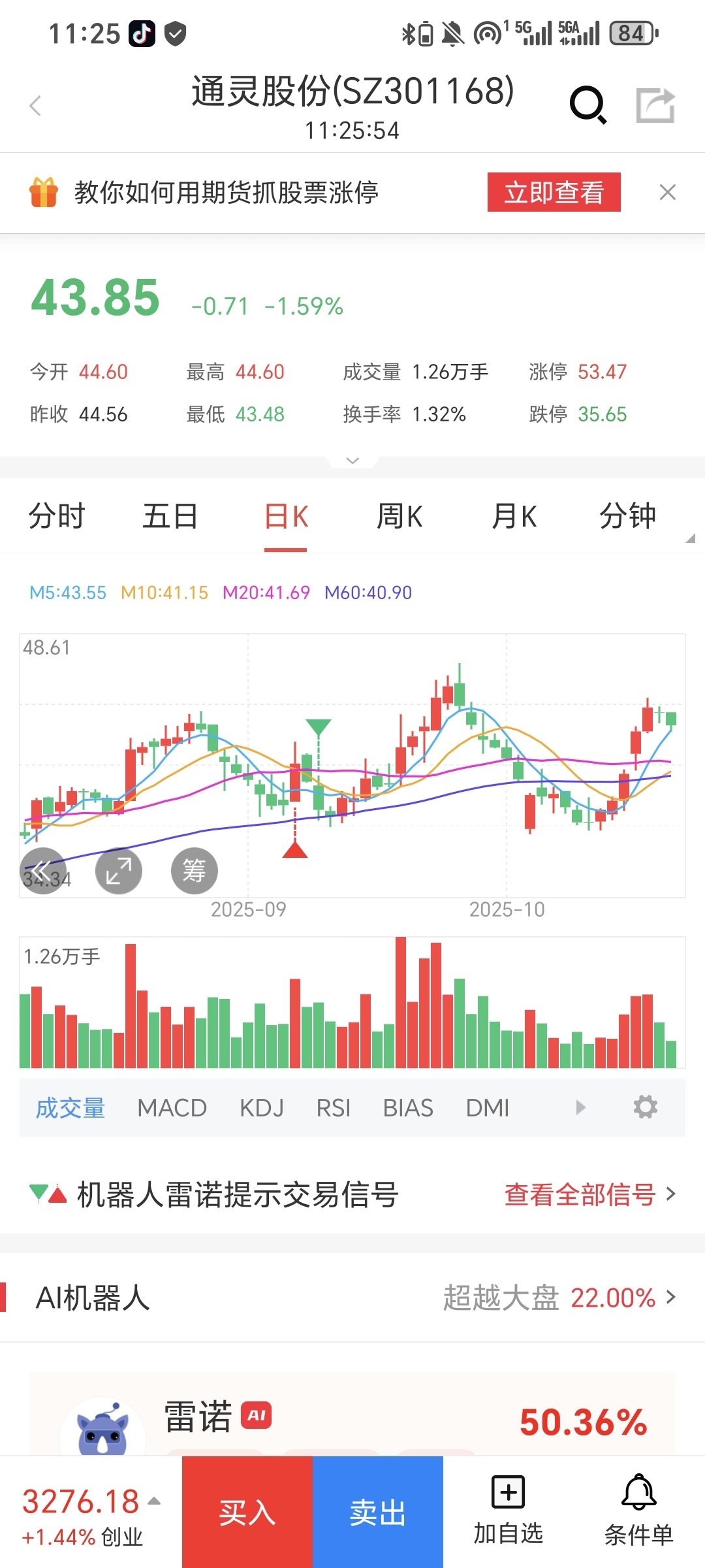 $通灵股份(SZ301168)$ 截至11时26分,通灵股份低开后震荡下行,现报43.84元,较昨日收盘价下跌0.72元,跌幅1.62%。早盘以44.60元开盘,随后股价震荡走低,盘中最低触及43.48元,最高仍为开盘价44.60元。