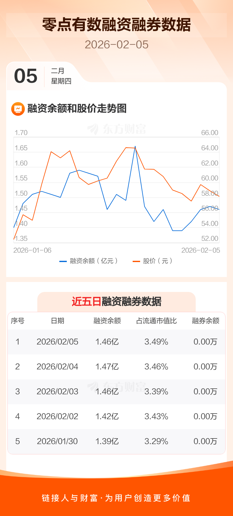 交易所最新数据显示,零点有数于2026年2月5日获融资买入643.60万元,融资偿还711.29万元,当日融资净偿还67.69万元。目前,该股融资余额1.46亿,占流通市值比例为3.49%。