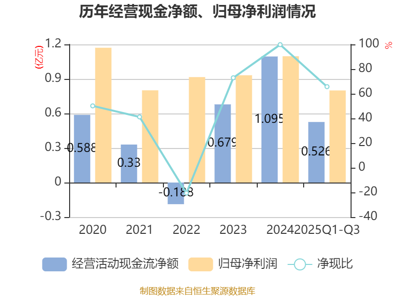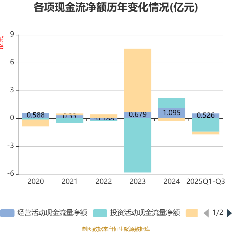 2025年前三季度,公司经营活动现金流净额为5260.33万元,同比下降27.47%;筹资活动现金流净额-3015.16万元,同比减少499.85万元;投资活动现金流净额-1.43亿元,上年同期为5001.69万元。