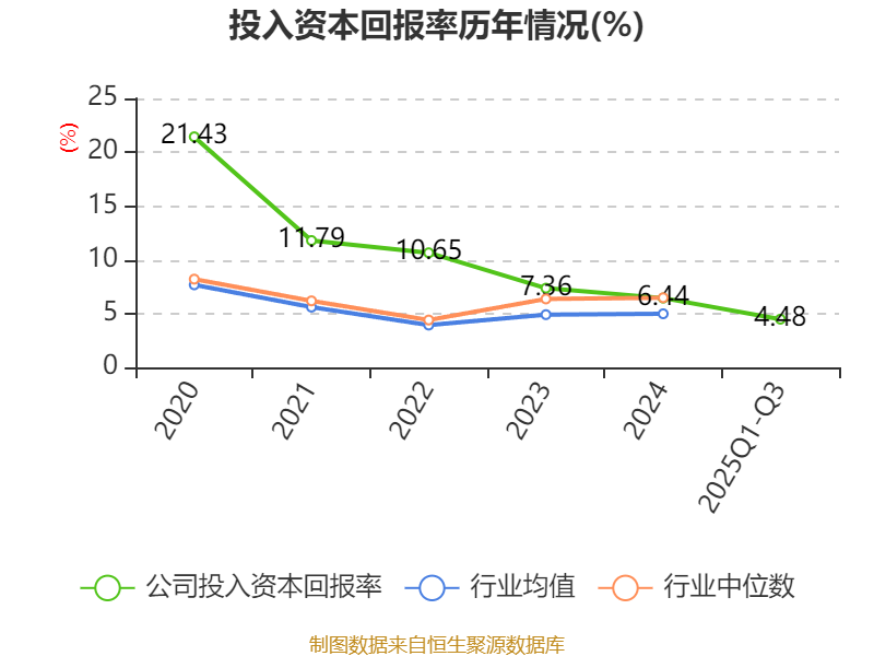 盈利能力方面, 2025年前三季度公司加权平均净资产收益率为4.6%,同比下降0.08个百分点。公司2025年前三季度投入资本回报率为4.48%,较上年同期下降0.1个百分点。