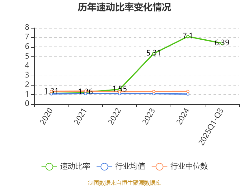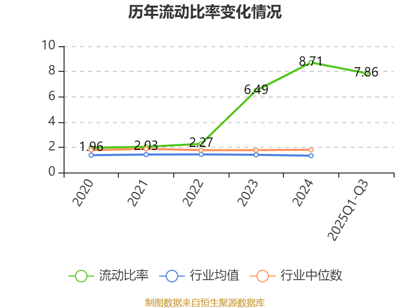 2025年前三季度,公司流动比率为7.86,速动比率为6.39。