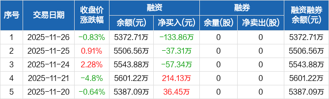 锡南科技:连续3日融资净偿还累计228.51万元(11-26)