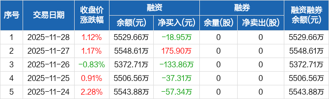 锡南科技:融资净偿还18.95万元,融资余额5529.66万元(11-28)