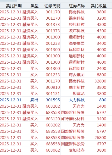 我们携手走过了熊市、牛市的风雨,在各自的股海中拼搏,收获了宝贵的财富,收获了成长与进步。无论是在追涨杀跌还是潜伏高抛低吸,我们每一位战友却倍感成功的喜悦。时代给了我们展示才华的风采!太力科技2025年最后一天爆涨的收盘,使我2025年获得了完美的收官战,也是太力科技爆涨带给我这次参加2026年首次股市沙龙户外活动的动力。