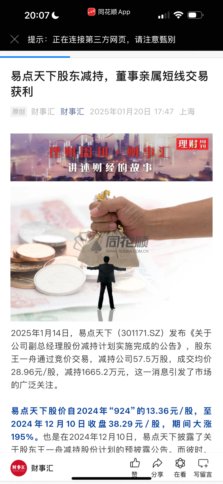 $易点天下(SZ301171)$ 同花顺 昨晚的消息,三天前的消息
