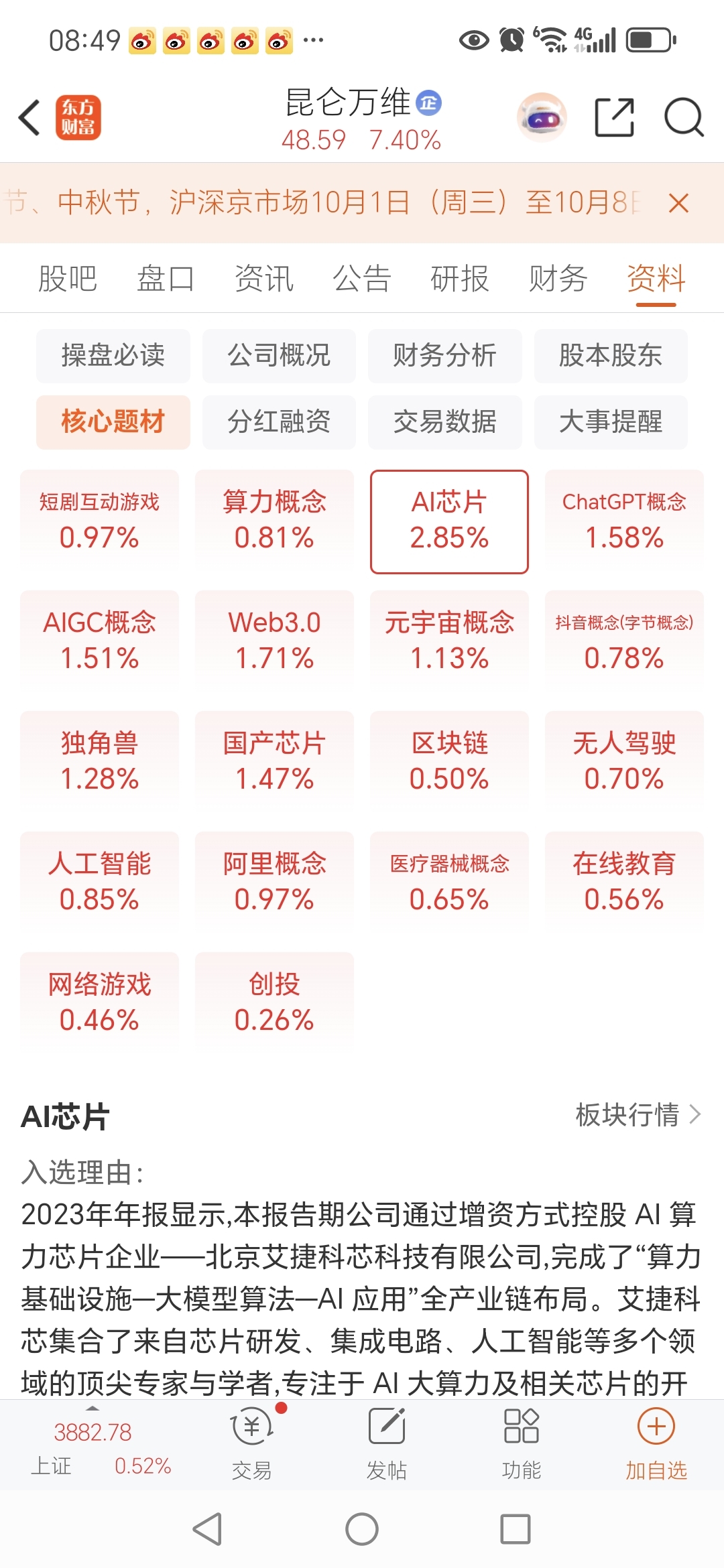 连昆仑万维那么拉及的亏损股都收购芯片捎带着AI芯片概念了,为啥易点天下就不能也玩