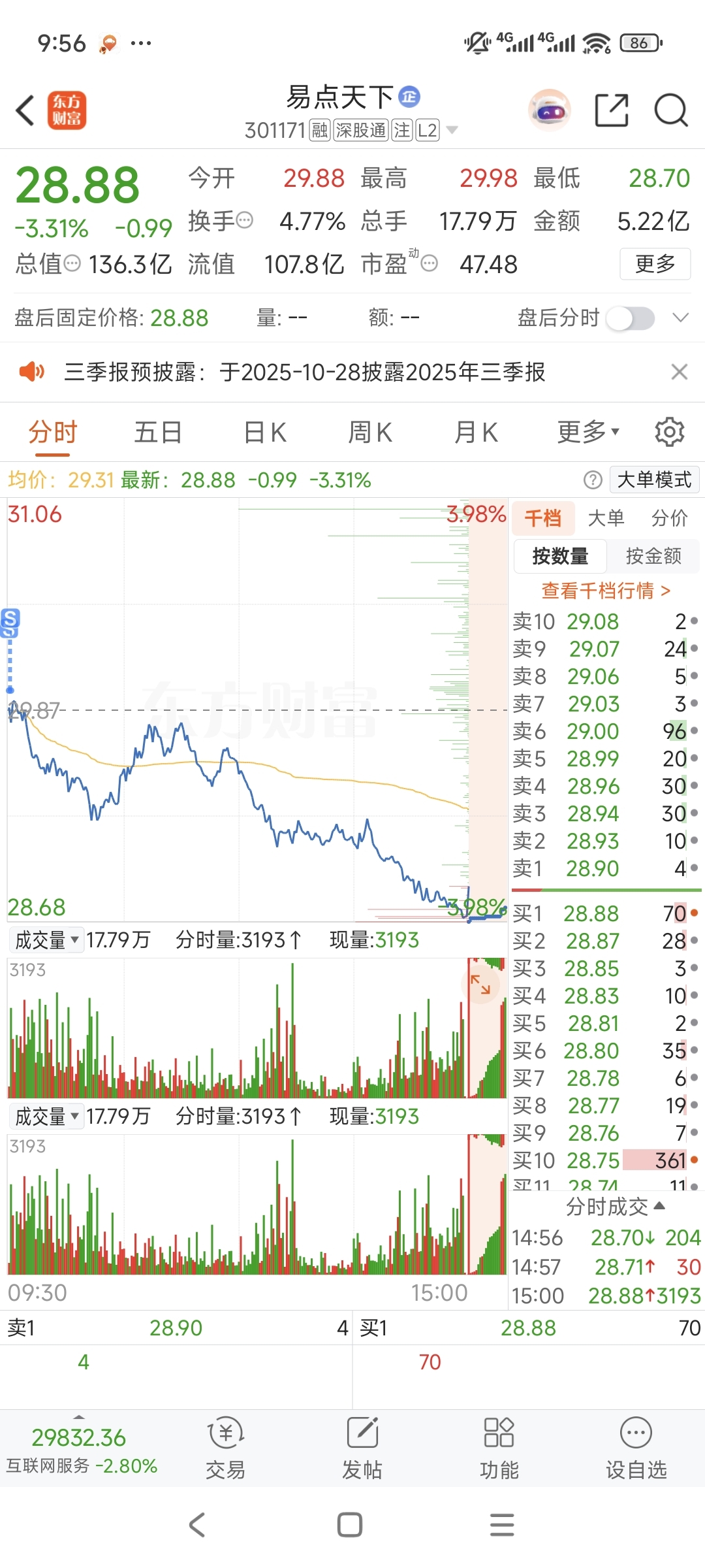 $易点天下(SZ301171)$ 周一来捡带血的筹码,28肯定可以买到