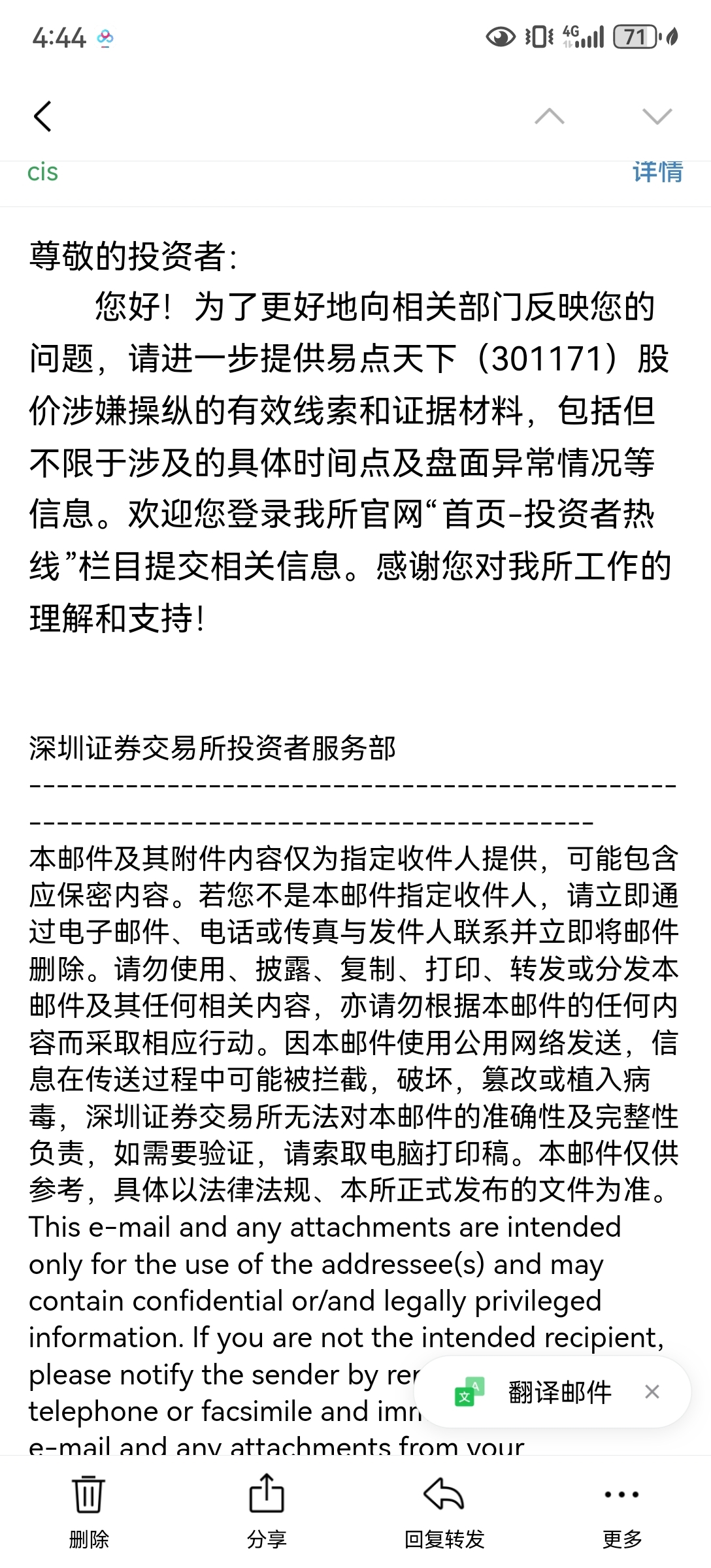 $易点天下(SZ301171)$ 不用感谢我,昨天竞价打跌停的账户已被锁定