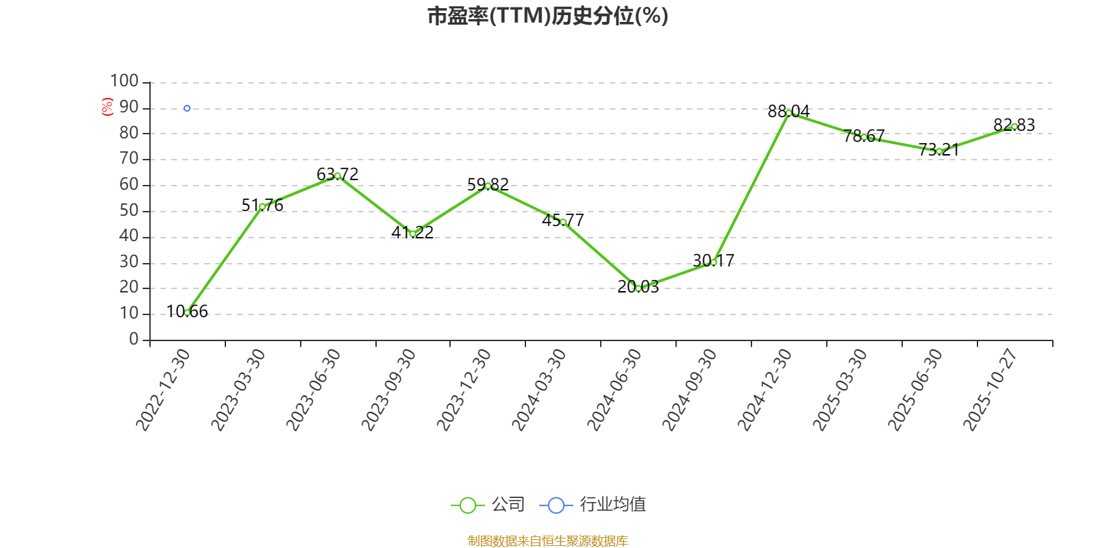 市盈率、市净率为负时,不显示当期分位数,会导致折线图中断。