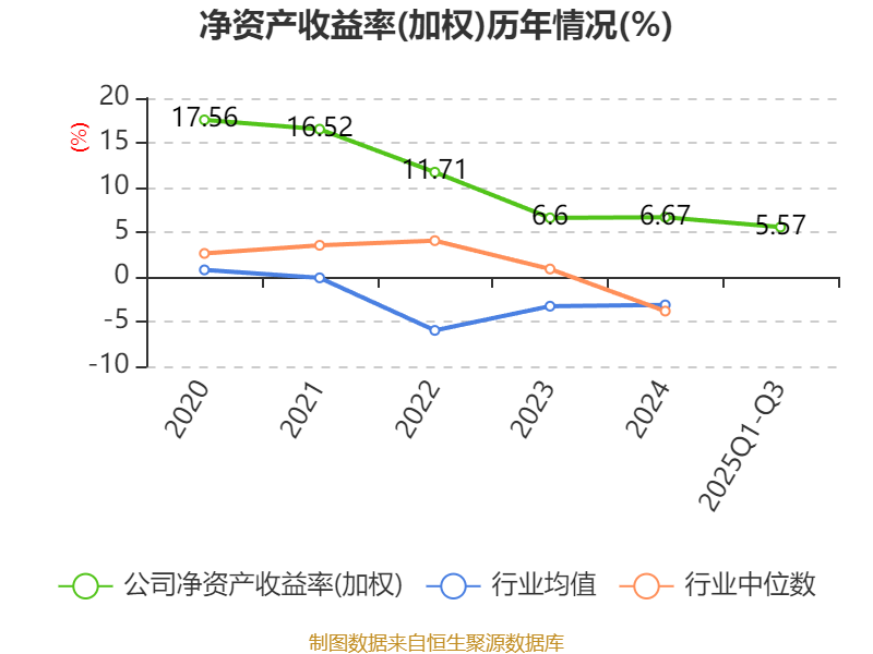 盈利能力方面, 2025年前三季度公司加权平均净资产收益率为5.57%,同比下降0.05个百分点。公司2025年前三季度投入资本回报率为3.9%,较上年同期上升0.09个百分点。