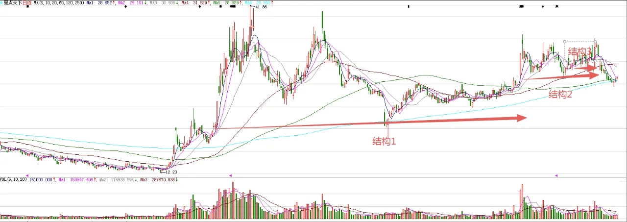 今天继续上涨,符合预期。周期面来看,最近一段调整,走了九个有效周期后企稳回升。目前,两条短期均线粘合,意味着短线股价还会继续上行。经过调整后,股价到了结构2的下轨,空间也到了。图中标注的大型结构1突破,意味着股价处在比较大的上涨趋势。结构2和结构3是结构1突破后的回踩,意味着后期有波段上涨。接下来,股价逐步走出波段上涨是大概率事件。
