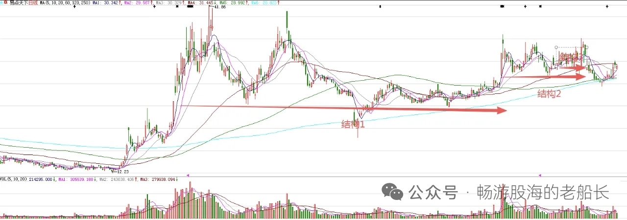 小幅度调整,低开高走,收出小阳线,回补了昨天的下影线,弥补了技术面的不足。周期面来看,变盘节点到了之后,也回踩了五日均线,空间到了。所以,周三股价大概率企稳回升,继续上涨。图中标注的大型结构1突破,意味着股价处在比较大的上涨趋势。结构2和结构3是结构1突破后的回踩,意味着后期有波段上涨。接下来,股价大概率走波段上涨!!