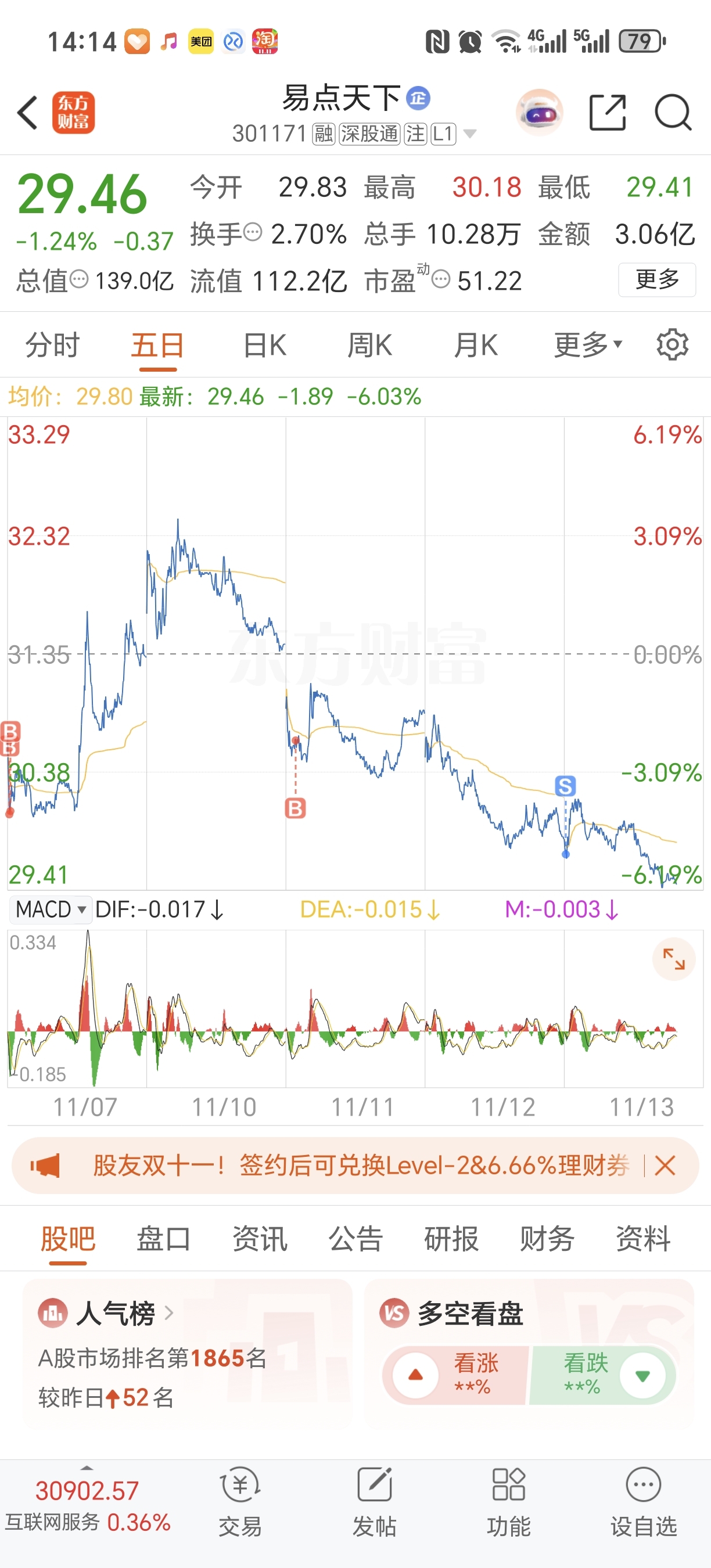 $易点天下(SZ301171)$ 一周玩了个寂寞,亏一个多点走人